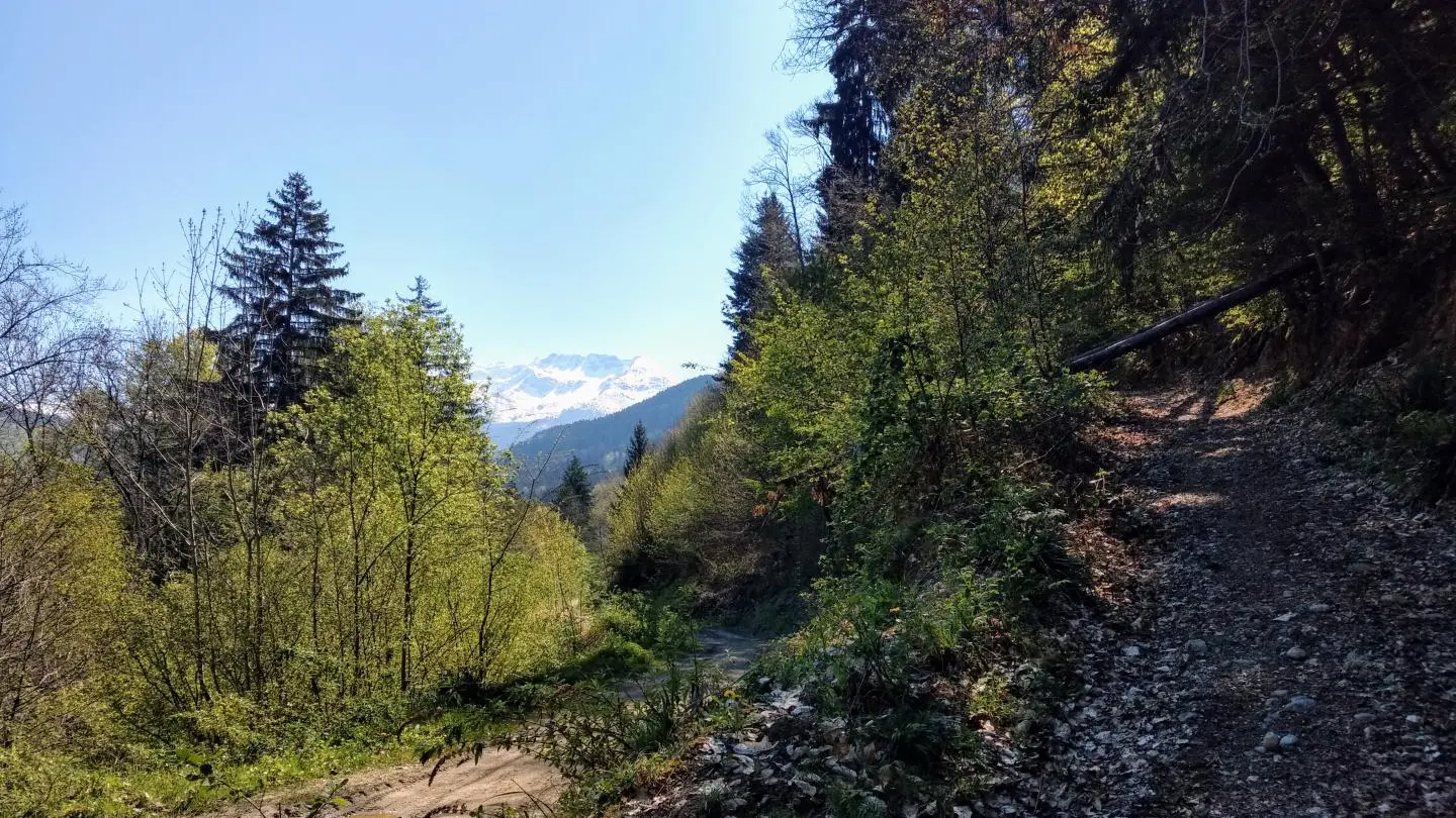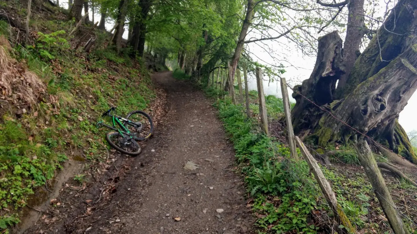 8,23 km - Le chemin commence à plonger plus rapidement et à se rétrécir avec une ornière au centre qui rend la descente un peu plus technique mais bien ludique pour des vététistes avec un minimum d’expérience.