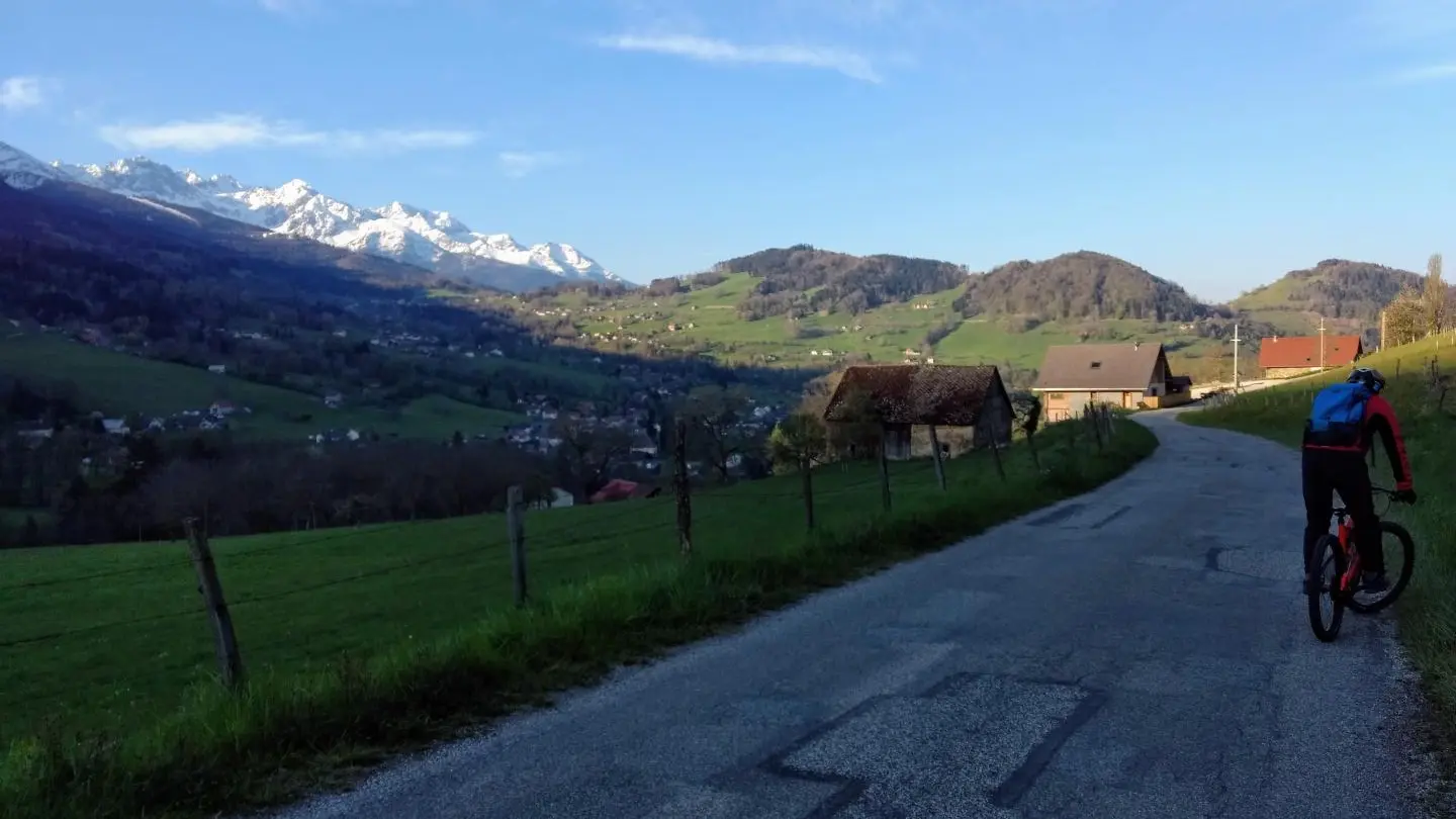 11,6 km - Vous arrivez sur la place de l'église où vous trouverez bars, bureau de tabac, journaux et autres commerces. Descendez plus bas jusqu'à la Boulangerie Benjamin Chaix où vous prenez à gauche la route d'Hurtières pour retrouver votre point de départ à côté de la Halle des Sports.