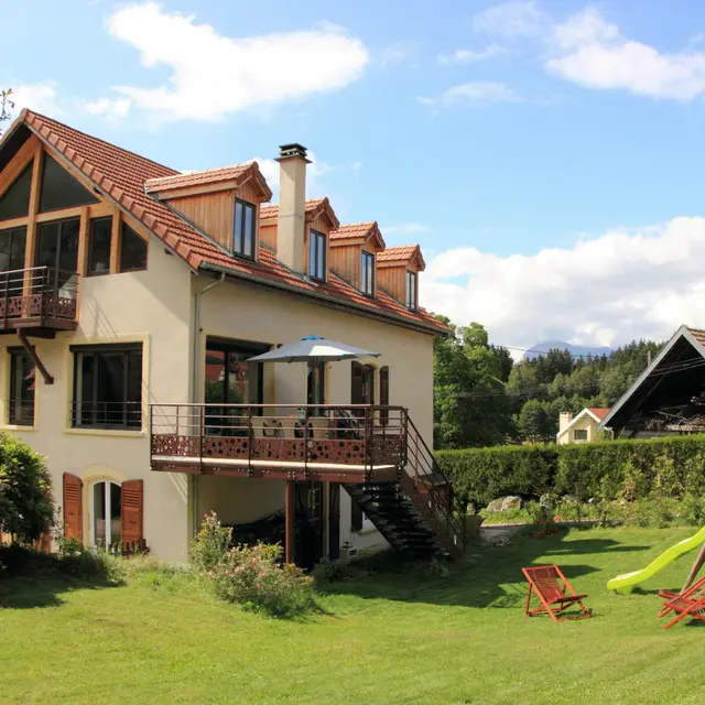 Wifi gratuit. Tout l'équipement pour une cuisine familiale et conviviale (raclette, fondue, barbecue..) Induction, fours , lave-vaisselle. Buanderie avec lave et sèche-linge, étendage entre 2 salles d'eau/wc . Dans le JARDIN commun: balançoires et toboggan pour enfants, chaises longues. 1er étage : grand séjour/cuisine, salon de 45 m²avec cheminée prolongé par une terrasse où vous pourrez prendre vos repas, la chambre fuchsia (1 grand lit 160 200 ou 2l its séparés 80 x200 ) et la chambre verte (1 grands lit) de 160x200 ), la chambre jaune ( 2 lits superposés). Au 2éme  étage :la grande chambre en sous-pente (grand lit + 2 lits d'appoint) , la chambre rose 1 lit 1 place et 2 lits superposés) , la 3éme salle d'eau avec baignoire et WC séparé. Pour se détendre ou se reposer une grande pièce de vie de 43 m² avec balcon, une superbe vue sur la montagne Télévision grand écran, Blu-ray, bibliothèque, kitchenette. Les lits sont faits à l'arrivée. N'apportez que vos équipements personnels, le linge de lit et de toilette sont fournis. Le ménage de fin de séjour est inclus. équipement pour bébé. Vous pourrez effectuer de nombreuses ballades et randonnées de tous niveaux et durées au départ du gîte. Pêche en torrent à proximité. Cyclisme, escalade et trail pour les sportifs